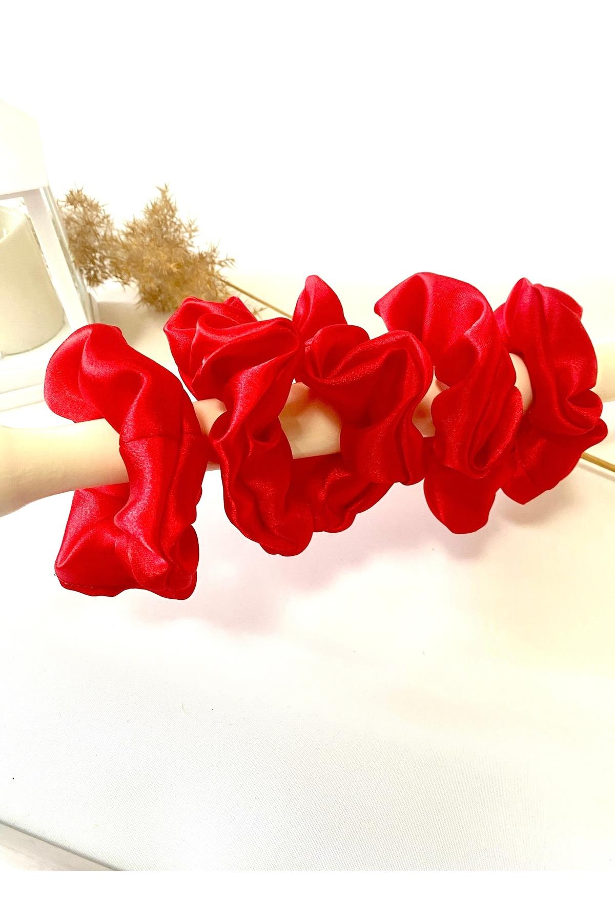 5 Adet Kırmızı Rahat Ve Şık Scrunchie Saten Simit Toka, Kına Için Toka