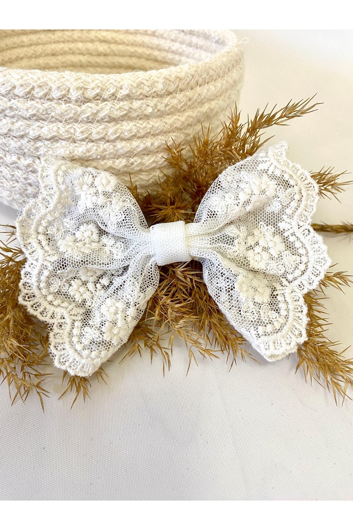 El Yapımı Ekru Dantel Fiyonk Toka, Özel Tasarım, Kına Nikah Davet Balo Özel Gün Pens Toka