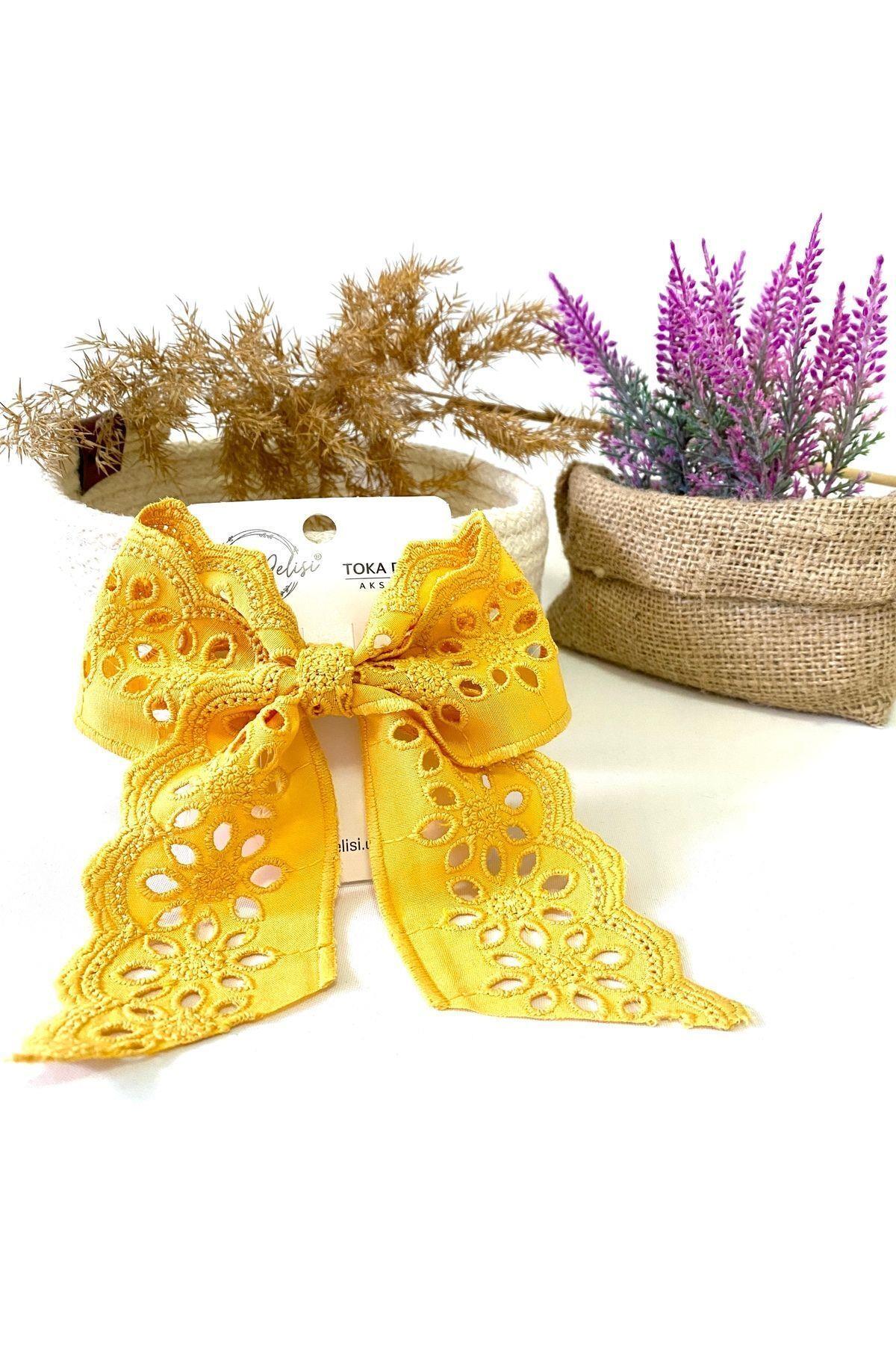 El Yapımı Fistolu 2024 Hardal Sarısı Fiyonk Toka, Özel Tasarım Toka, Kına Nikah Davet Balo Toka