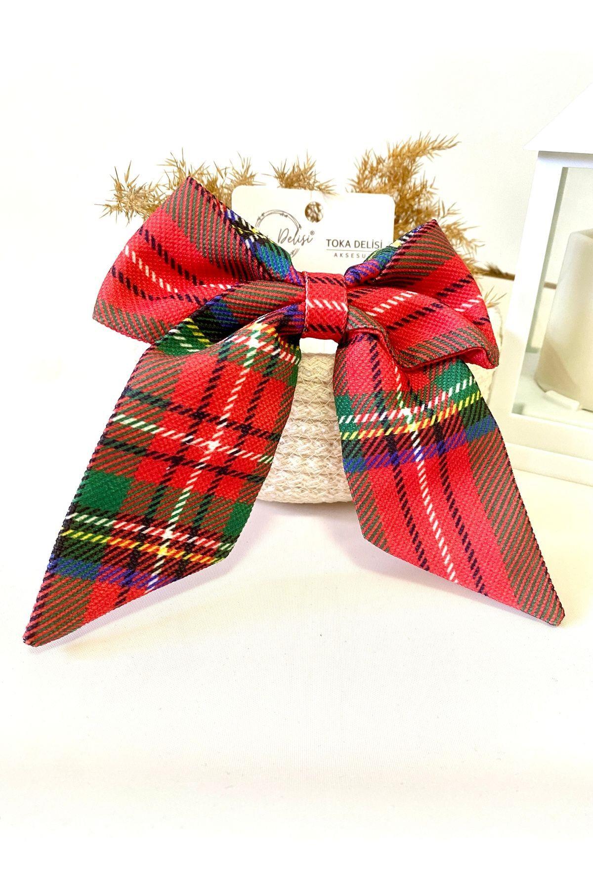 El Yapımı Kırmızı Yeşil Ekose Fiyonk Toka, Özel Kırmızı Yılbaşı Tokası, Sevgililer Günü Kadin Toka El Yapımı Kırmızı Lacivert Kareli Model Fiyonk Toka, Kırmızı Yılbaşı Toka, Sevgililer Gün Kadin Toka