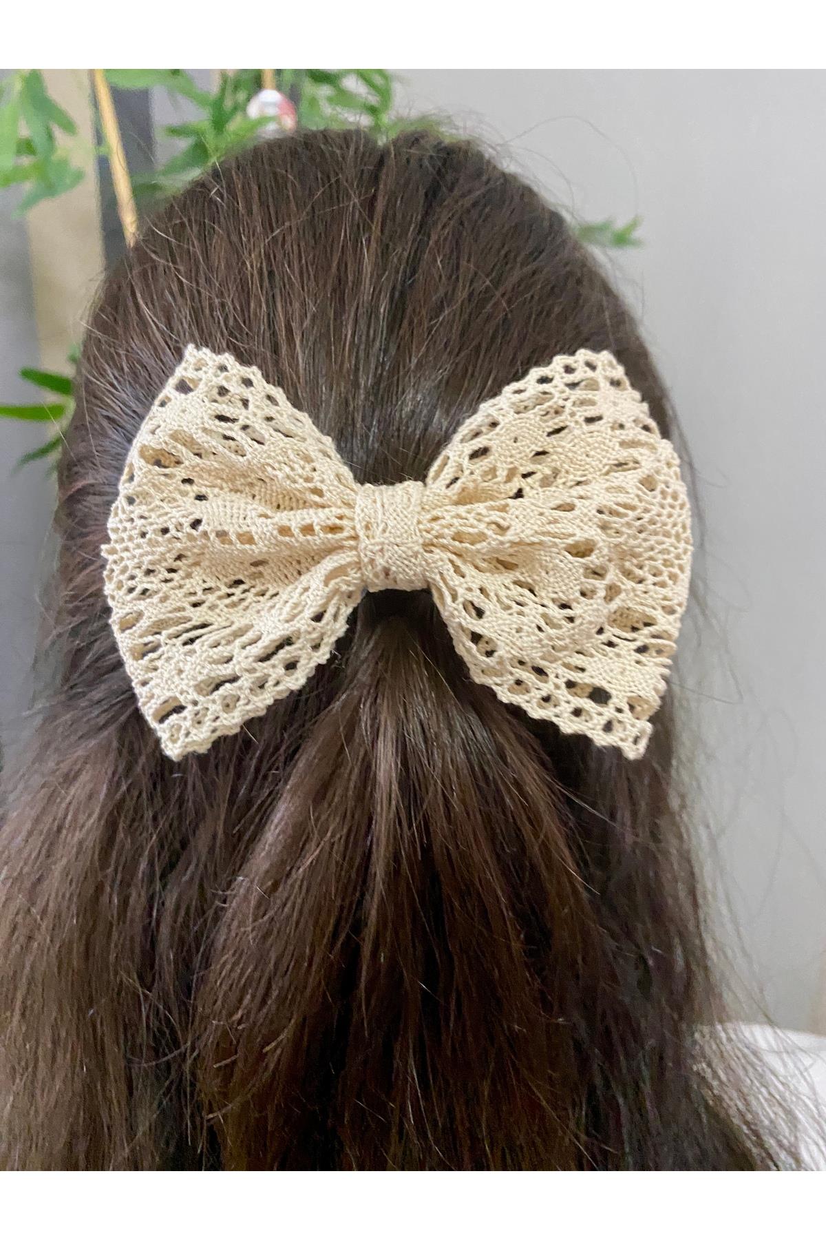 El Yapımı Kadın Krem Dantel Otomatik Fiyonk Toka, Kadin Toka