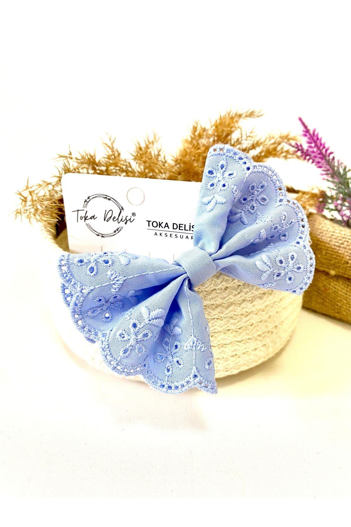 El Yapımı Leylak Mavisi Fisto Çocuklar İçin Fiyonk Toka, Özel Tasarım, Davet Balo Özel Gün Pens Toka