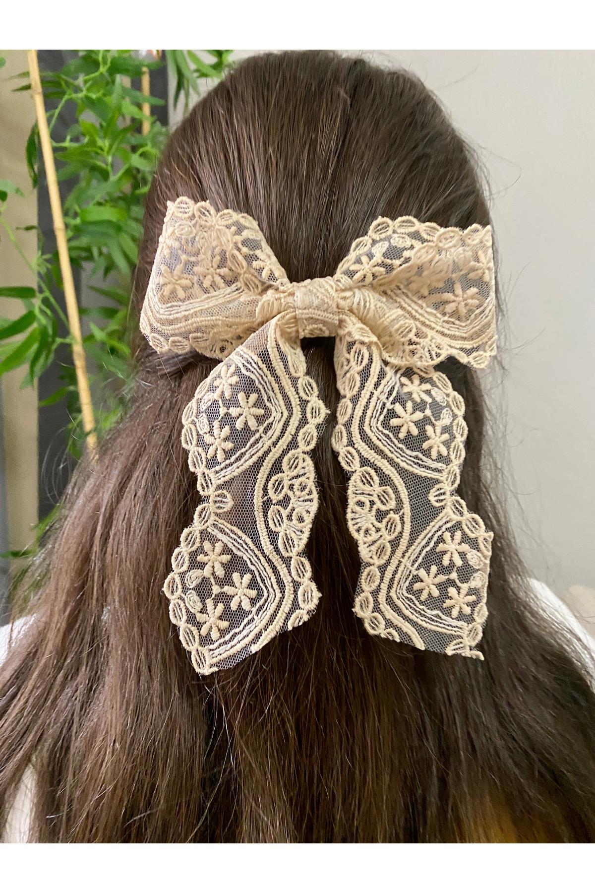 El Yapımı Romantik Kapuçino Dantel Fiyonk Toka, Otomatik Klipsli Saç Tokası, Kadin Toka