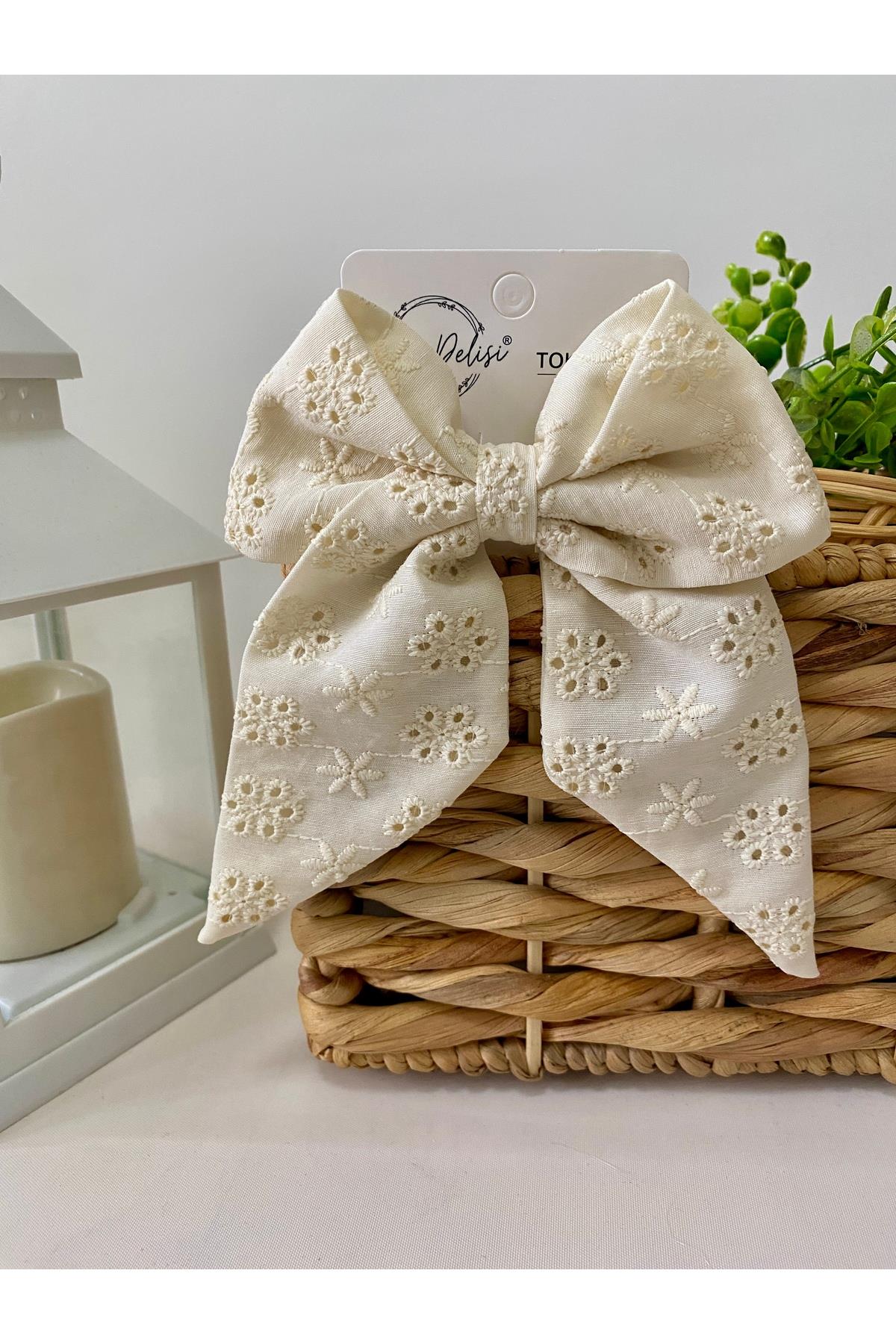 Fisto El Yapımı Krem Otomatik Fiyonk Toka Özel Tasarım, Kına Nikah Kadin Toka