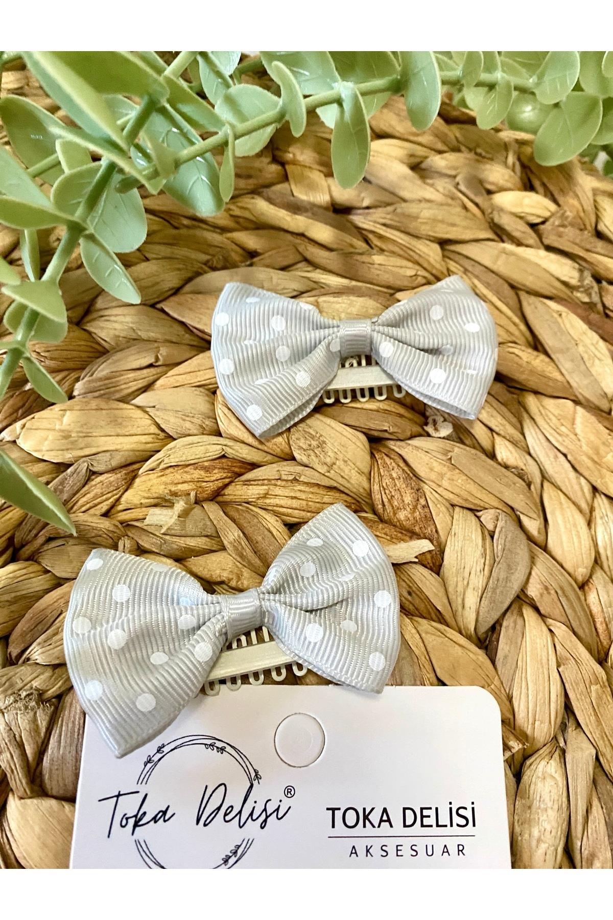 Gri Beyaz Puantiyeli Saçsız Bebek Tokası, Ikili Sevimli Saç Acıtmayan Kurdeleli Saçsız Bebek Tokası