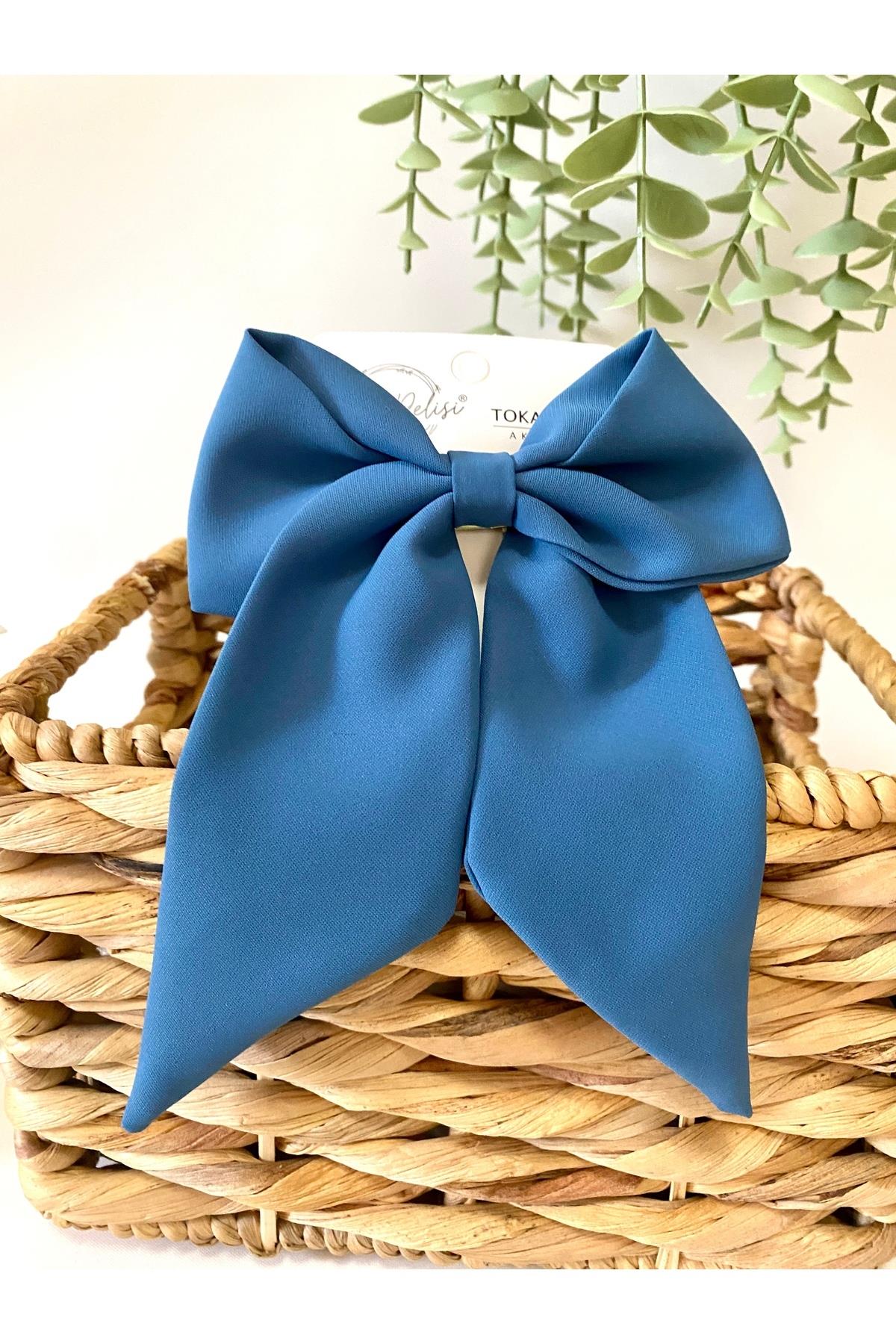İndigo Mavisi Kadin Renkli Otomatik Fiyonk Toka El Yapımı