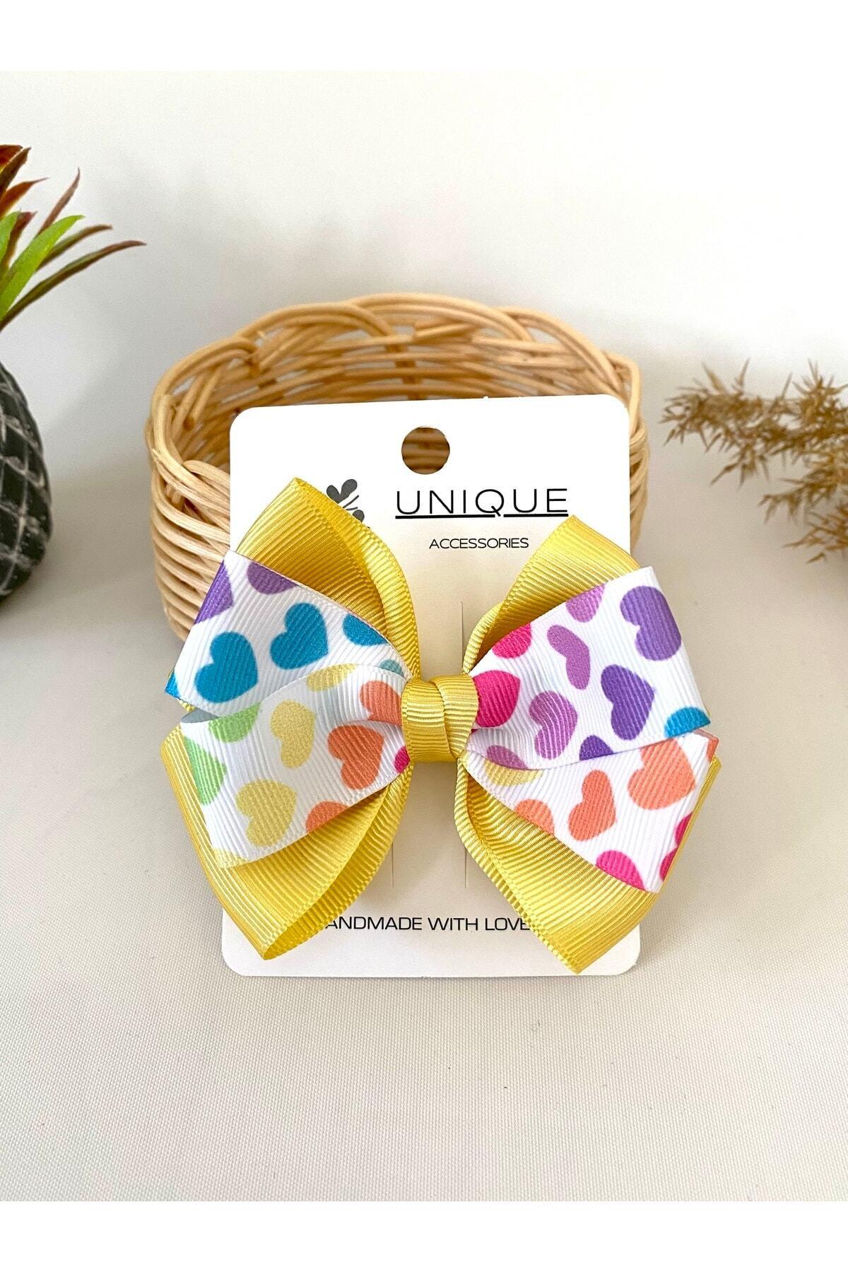 Kalpli Sarı Kurdele Fiyonk Toka, El Yapımı Özel Gün Grogren Kurdele Çocuk Klipsli Kiz Cocuk Toka