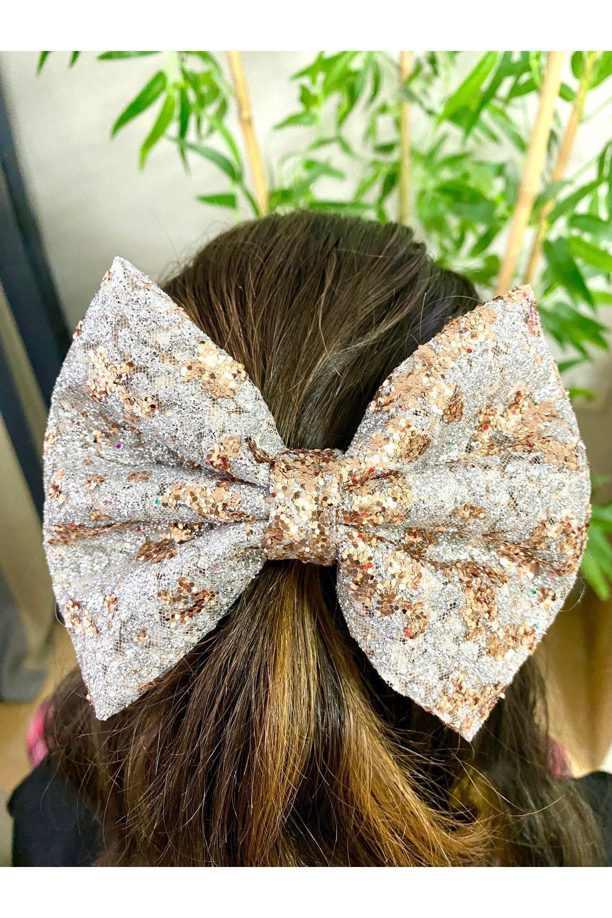 Premium Abiyelik Kumaştan Kadin Otomatik Büyük Işıltılı El Yapımı Fiyonk Toka, Kadin Toka