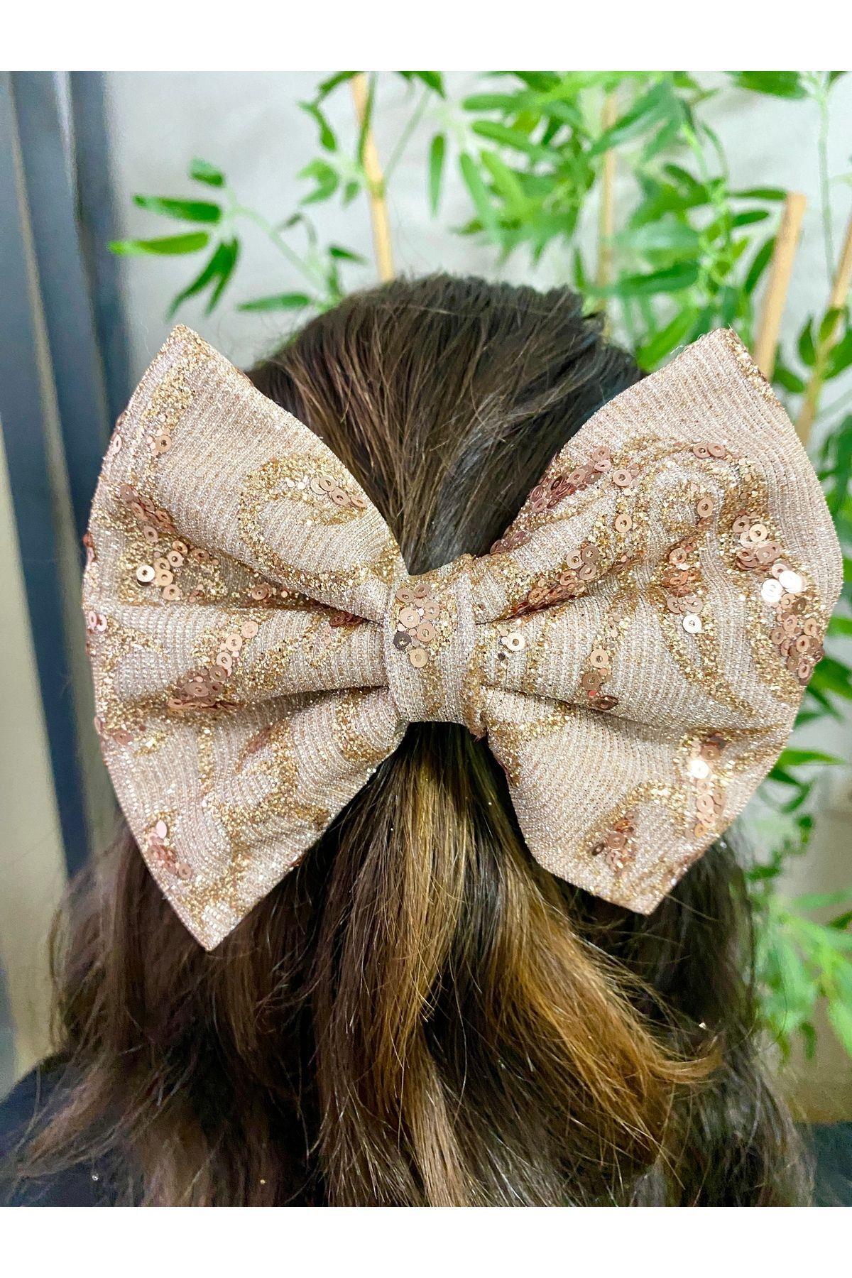Premium Abiyelik Kumaştan Kadin Otomatik Büyük Işıltılı El Yapımı Fiyonk Toka, Kadin Toka