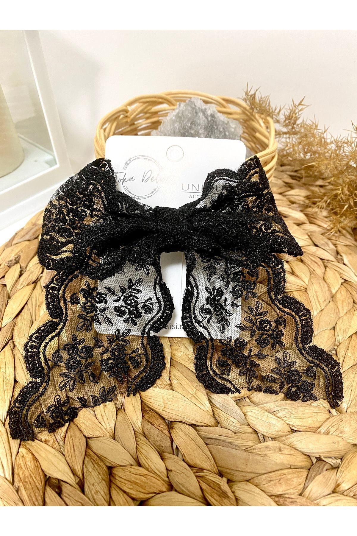 Romantik Siyah Transparan Dantel Otomatik Fiyonk El Yapımı Yetişkin Çocuk Klipsli Toka Hediye