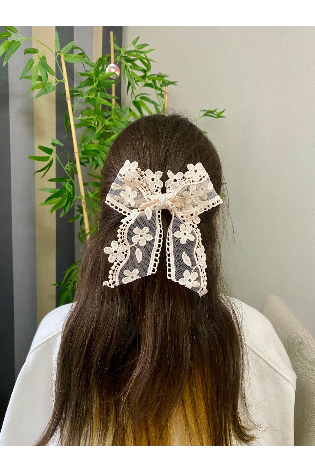 Sınırlı Sayıda Pembe Beyaz Kadin Otomatik Fiyonk Toka El Yapımı Klipsli