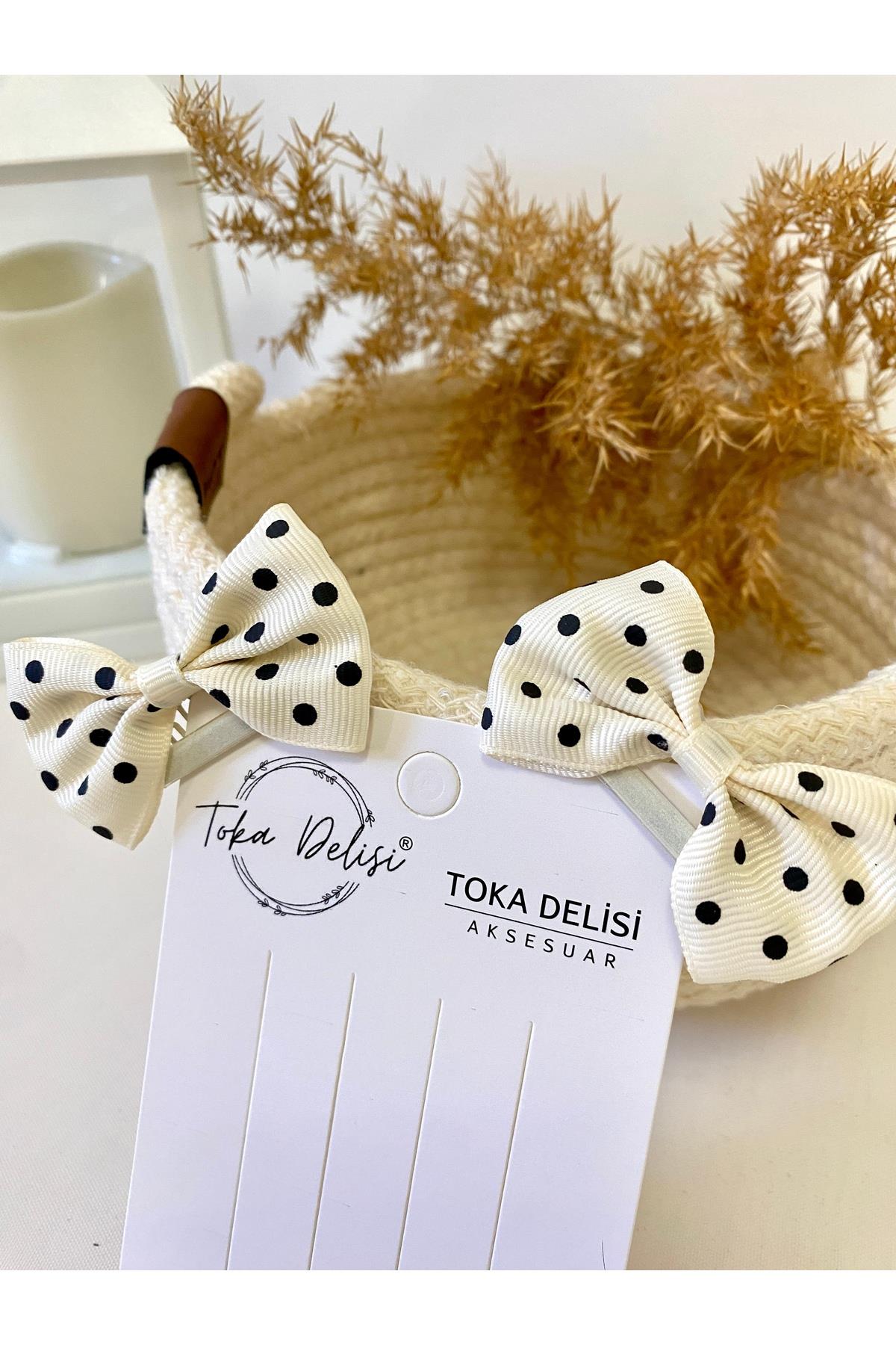 Saçsız Bebek Tokası, İkili Sevimli Saç Acıtmayan Puantiyeli Kurdeleli Saçsız Bebek Tokası