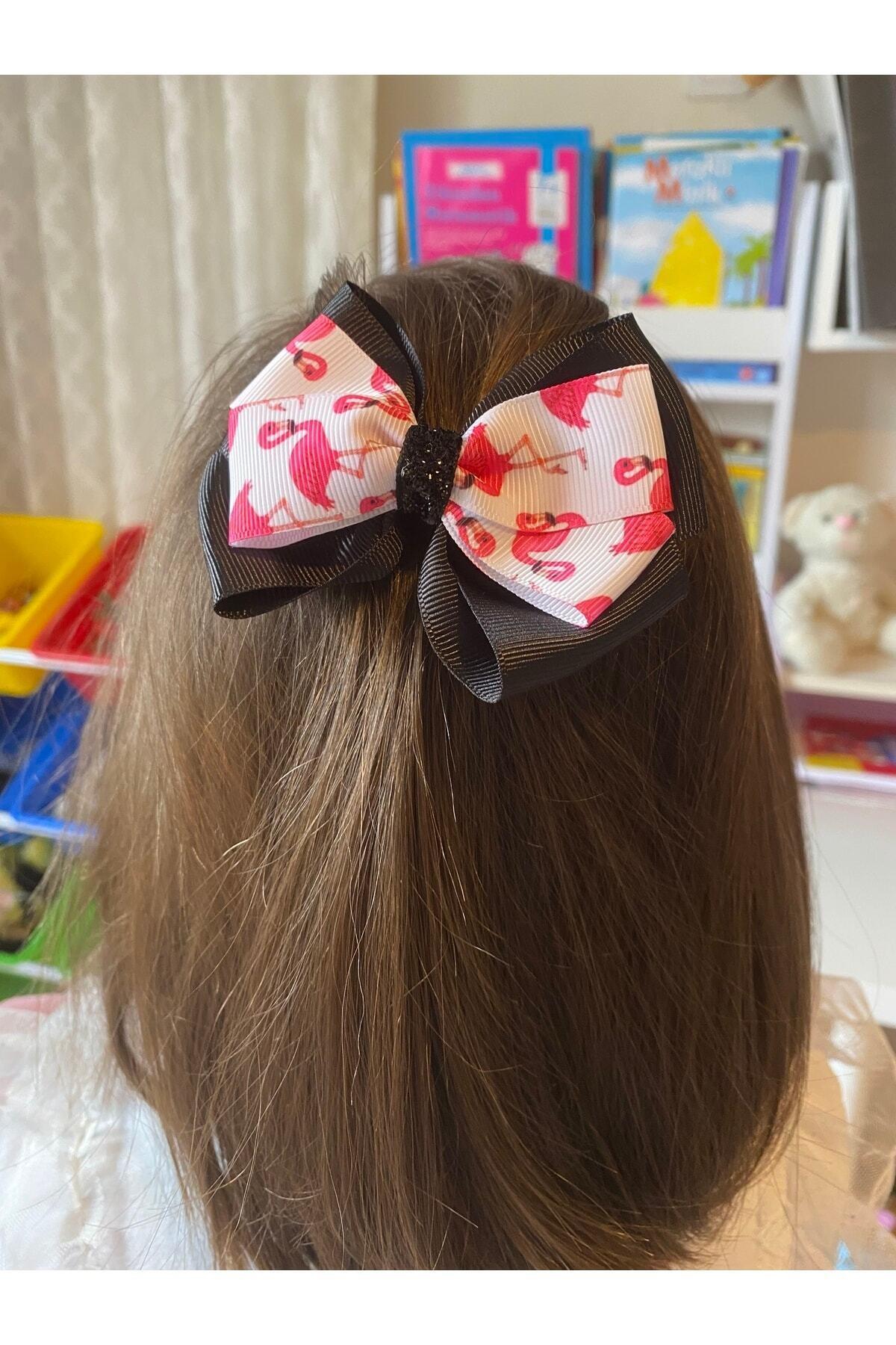 Siyah Fiyonk Toka, El Yapımı Özel Gün Grogren Kurdele Çocuk Klipsli Son Trend Flamingo Fiyonk Toka