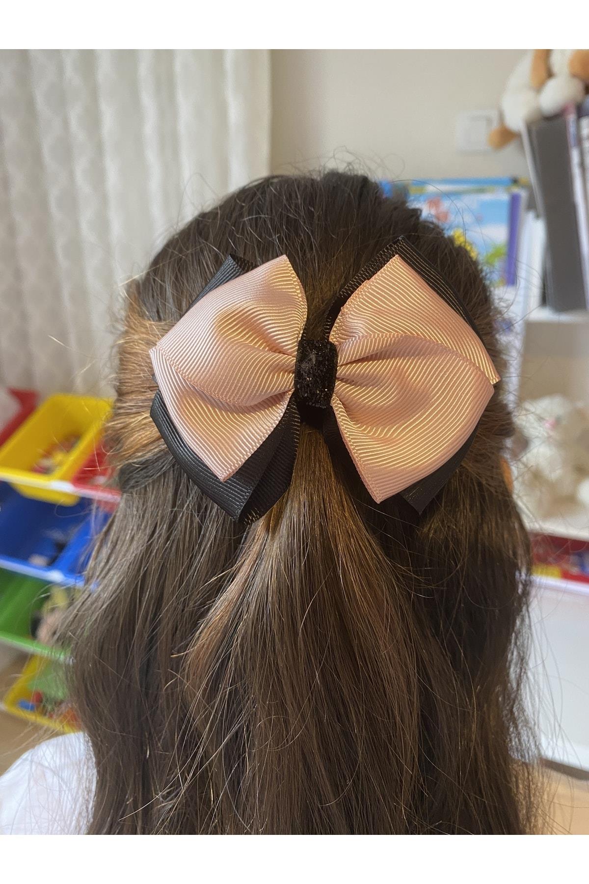 Siyah Fiyonk Toka, El Yapımı, Bej Fiyonk Toka, Kurdele Çocuk Klipsli Son Trend Fiyonk Toka