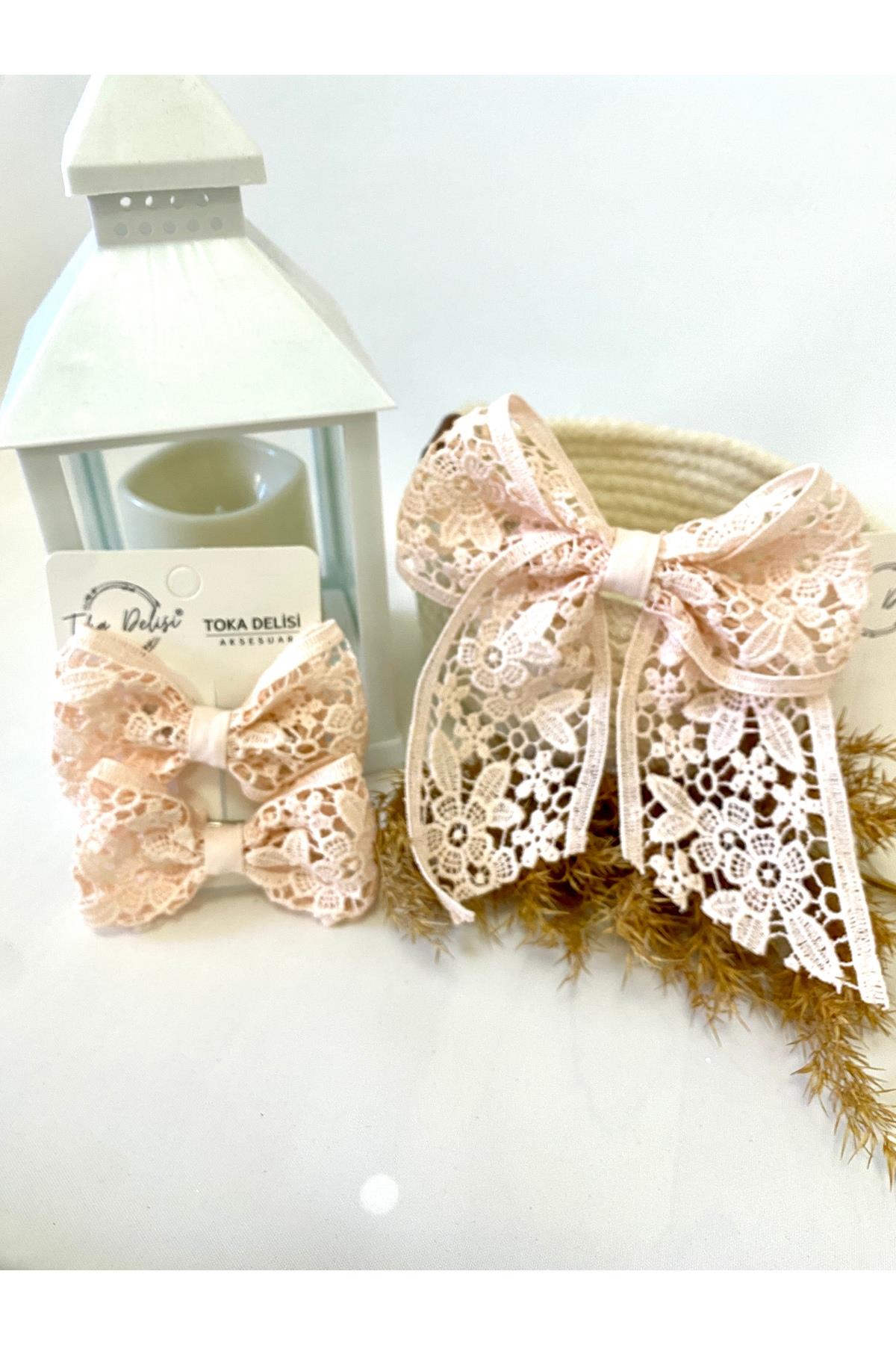 Somon Dantel El Yapımı Anne Kız Otomatik Beyaz Fiyonk Toka Özel Tasarım, Kına Nikah Kadin Toka